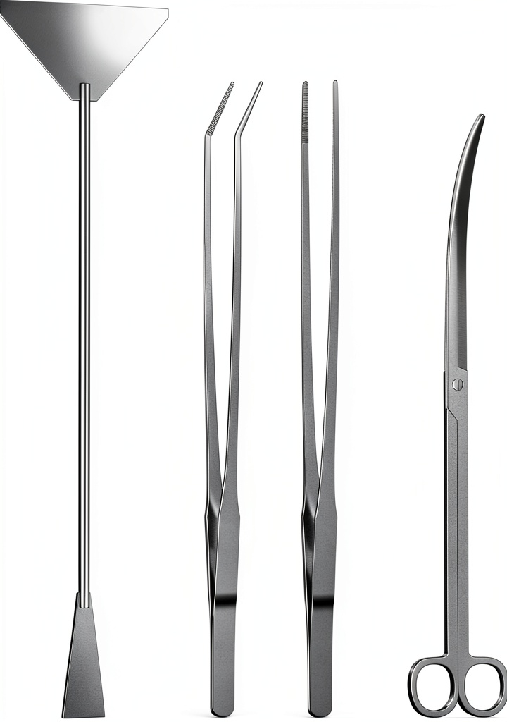 • 10.6-inch straight and curved tweezers for easy planting and maneuvering in deep tanks.